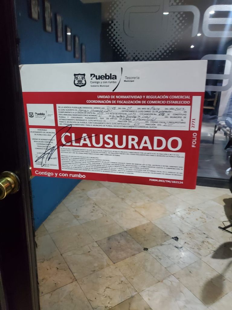 Esta acción bajo la estrategia “Escudo Puebla”, resultó en la clausura de 10 establecimientos, cinco sanciones, siete comercios sin actividad comercial, y solo uno con documentación en orden.