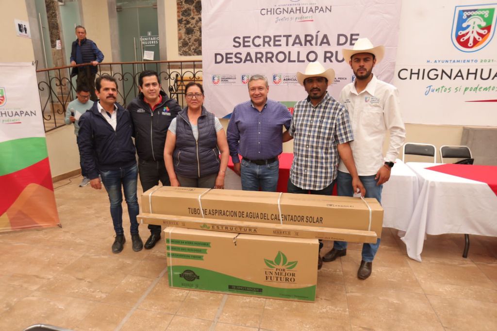 Chignahuapan, Puebla.- El Presidente Municipal, Lorenzo Rivera Nava, hizo la segunda entrega de más de 100 calentadores solares de 12 tubos, logrando la cobertura al 100% de la población empadronada dentro del programa, “Fortaleciendo a la Vivienda Rural de Chignahuapan”.
