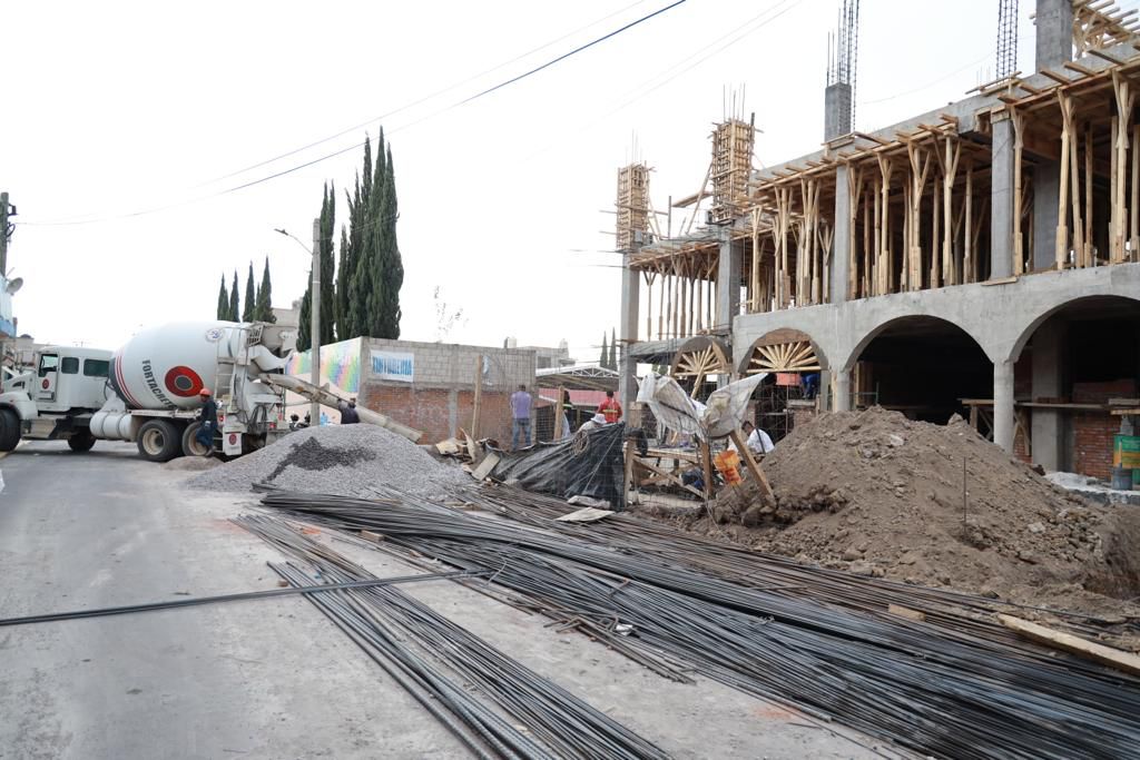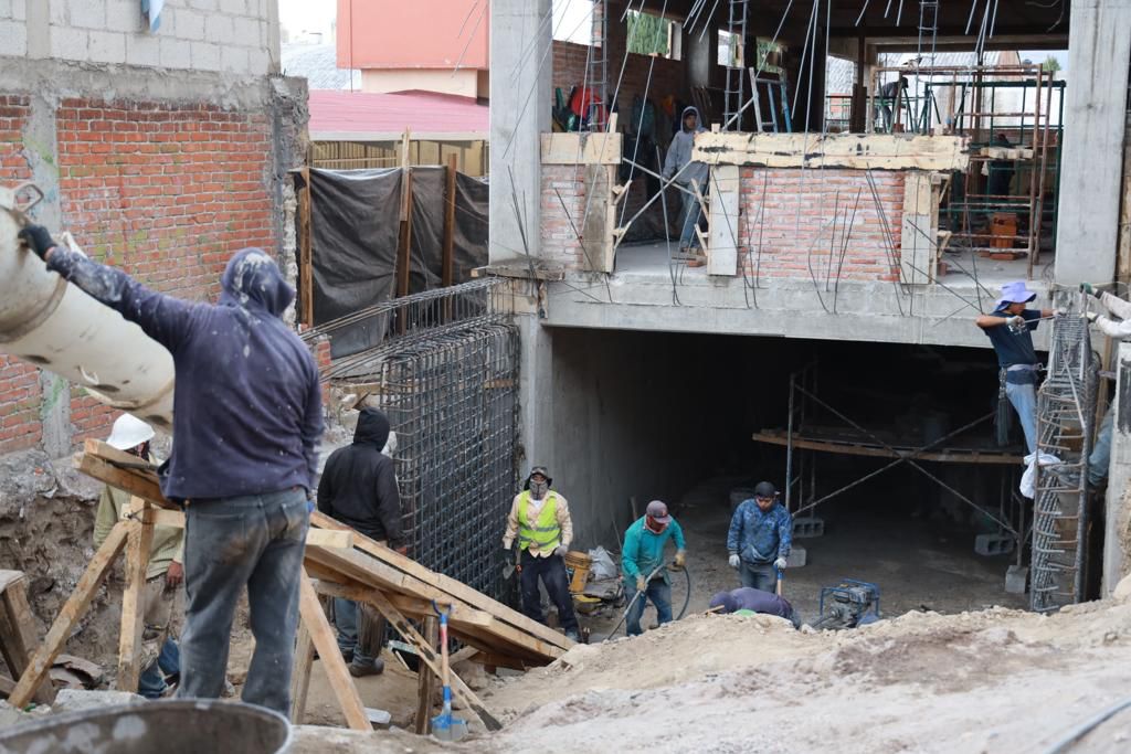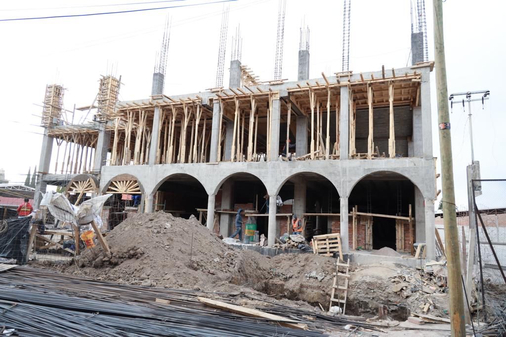Entre los trabajos que actualmente se realizan, destaca la colocación de muros perimetrales, interiores y el colado de la tercera loza para sostener el segundo nivel.