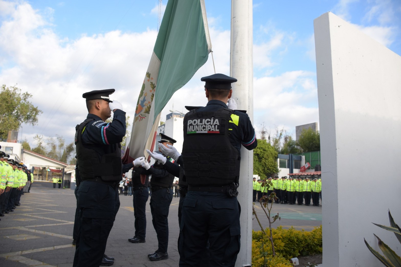 Como cada lunes y con el objetivo de promover, destacar y resaltar la civilidad a los lábaros patrios, elementos de la Secretaría de Seguridad Ciudadana participaron en la ceremonia, encabezada por la titular María del Consuelo Cruz Galindo.