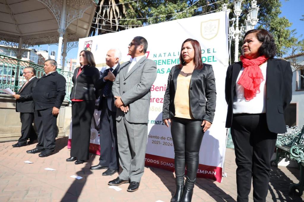 En presencia de servidores públicos, personal del ayuntamiento y ciudadanía en general, el presidente municipal Gustavo Jiménez Romero, recordó el natalicio del también llamado «Benemérito de las Américas», pues es en una fecha significativa para todo México.