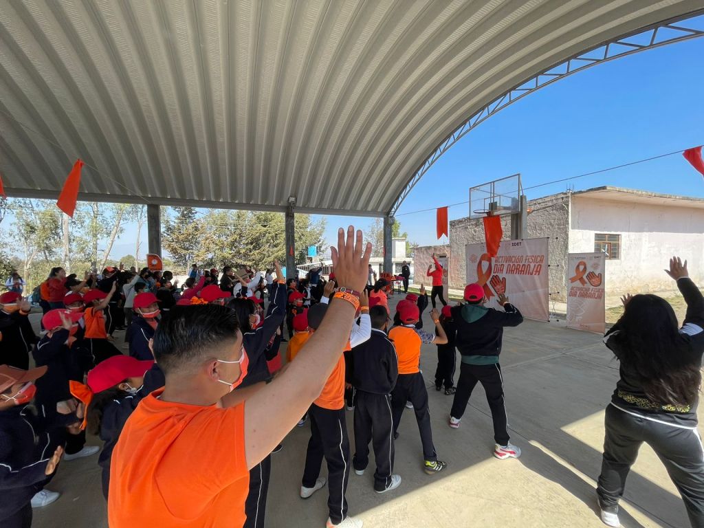 Con el objetivo de visibilizar y erradicar la violencia de género en las nuevas generaciones, más de 180 personas, entre niñas, niños, así como docentes, participaron en la conmemoración del Día Naranja, organizada por el gobierno del estado a través del Instituto del Deporte de Tlaxcala (IDET), con actividades recreativas que se efectuaron en la explanada principal de la comunidad de San Miguel El Piñón, municipio de Españita.
