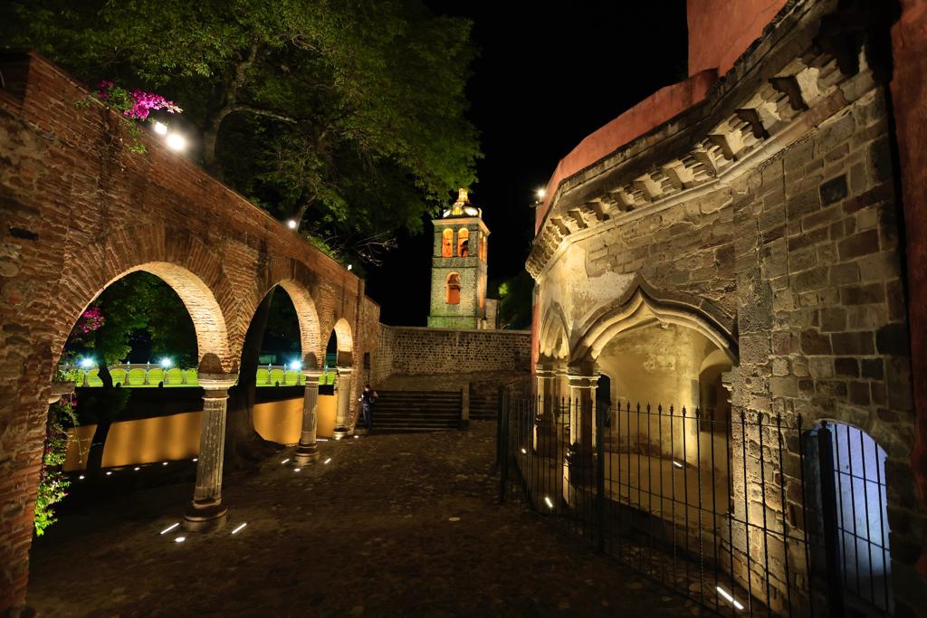 La iluminación busca mostrar la belleza arquitectónica del ex Convento de San Francisco, además de atrios, capillas y calzada, también se cambió toda la instalación eléctrica e iluminación del Antiguo Hospital de la Encarnación.