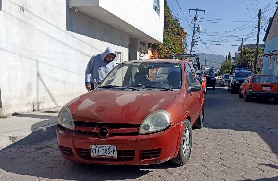 Se detectó que se trataba de un vehículo marca Chevrolet, tipo Chevy, color naranja, modelo 2006, con placas de circulación XVJ308-A particulares del Estado de Tlaxcala, el cual, minutos antes, había sido reportado como robado sobre la calle 13 de la colonia La Loma Xicohténcatl.