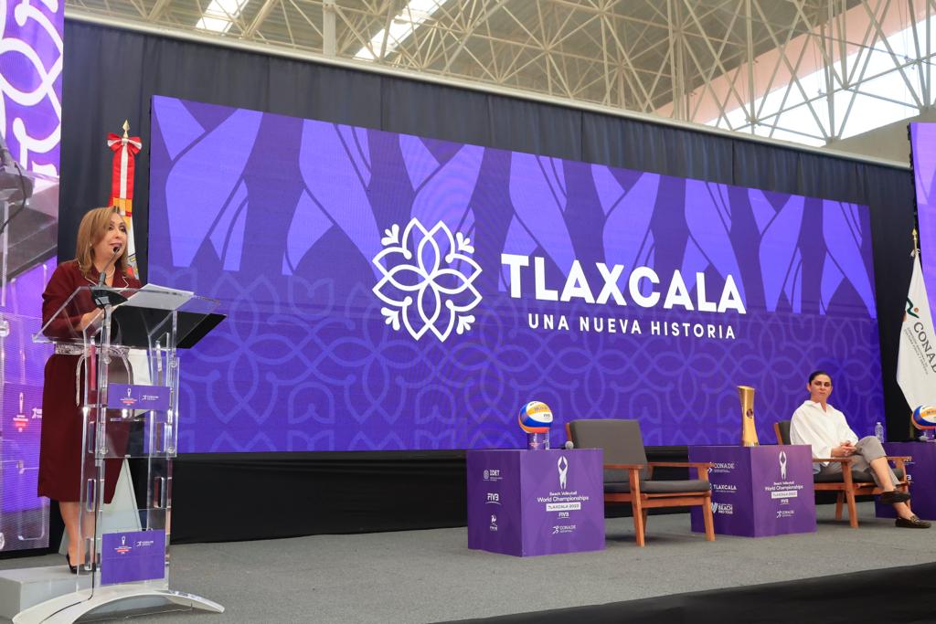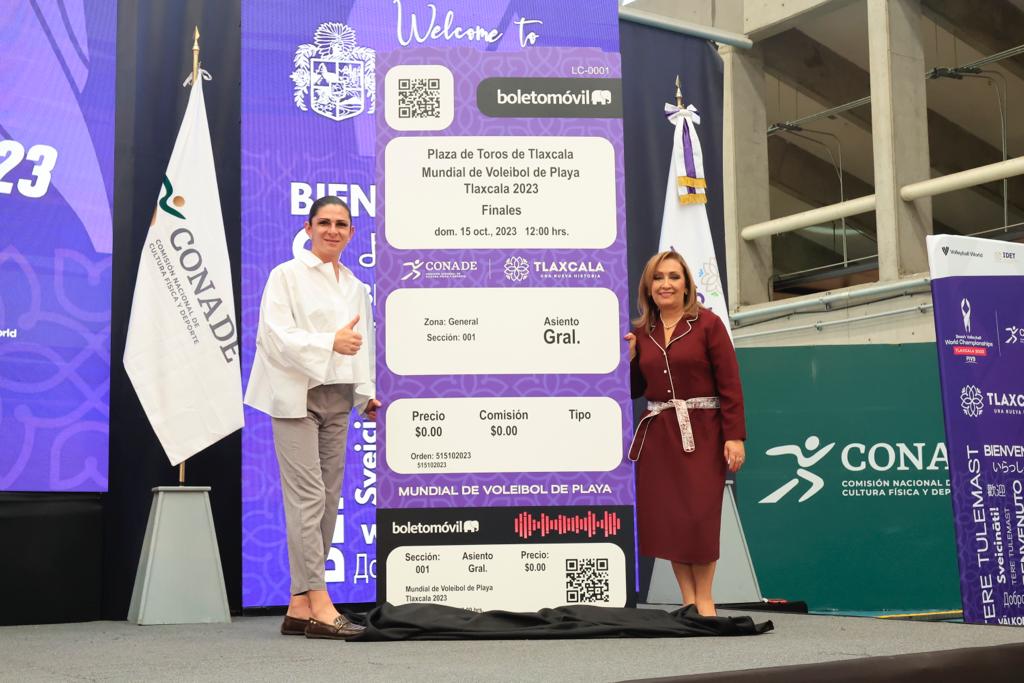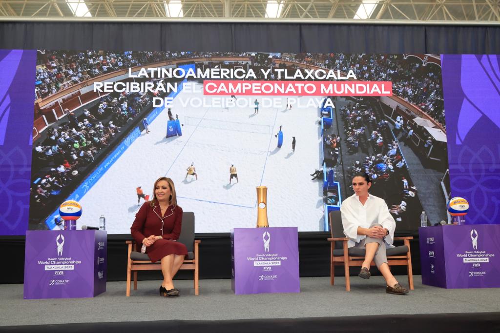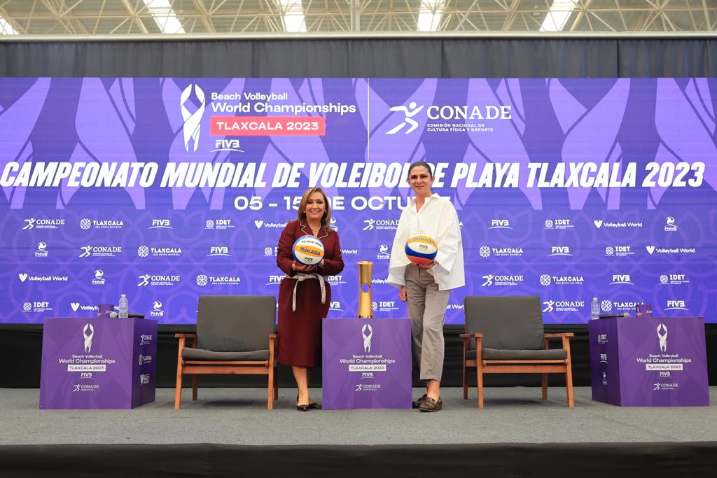 La gobernadora Lorena Cuéllar Cisneros y la directora de la Comisión Nacional de Cultura Física y Deporte (Conade), Ana Gabriela Guevara, presentaron oficialmente el Mundial de Voleibol de Playa Tlaxcala 2023, que se llevará a cabo del 5 al 15 de octubre.