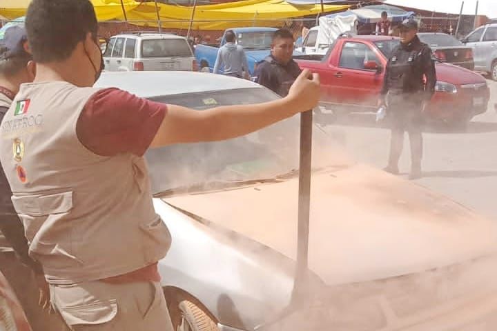 Los hechos ocurrieron la mañana de este miércoles cuando comerciantes del tianguis que se instala este día en el recinto ferial, solicitaron el apoyo de los cuerpos de emergencias, ya que un coche comenzó a prenderse al interior del estacionamiento.