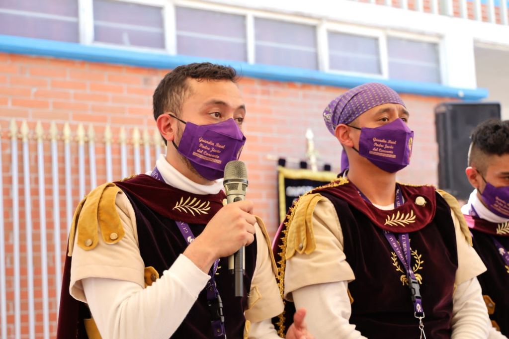 En el acto, que se llevó a cabo en el cuartel del grupo denominado “Guardia Real de Padre Jesús del Convento”, el presidente municipal reconoció a los alabarderos y a los grupos que se organizan cada año para que la Semana Santa se realice con éxito y siga tan viva como hace muchos años.