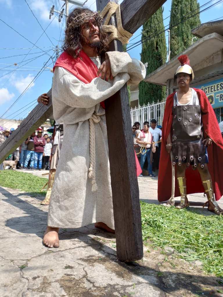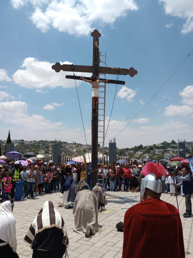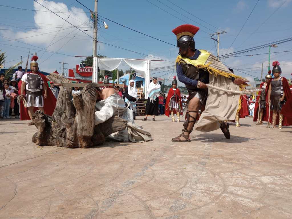 El dia de hoy el Grupo Cristo Rey de Tequexquitla, Tlaxcala, efectuo la escenificacion de la Pasion y Muerte de Jesucristo, a la cual arribaron miles de espectadores desde temprana hora.