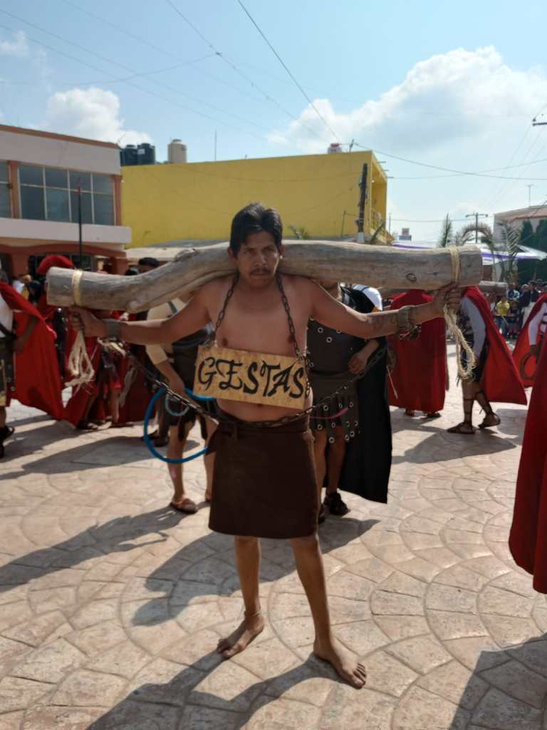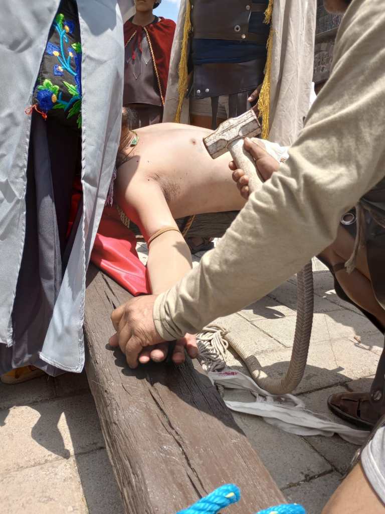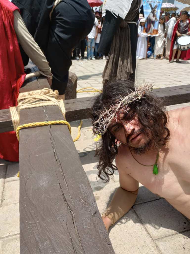 Ramiro Herrera quien realizo el papel de Jesus cargo una cruz de 110 kilos en un recorrido de 4 kilometros, quien su Fe hizo que hasta el ultimo momento de la actuacion realizara su papel.