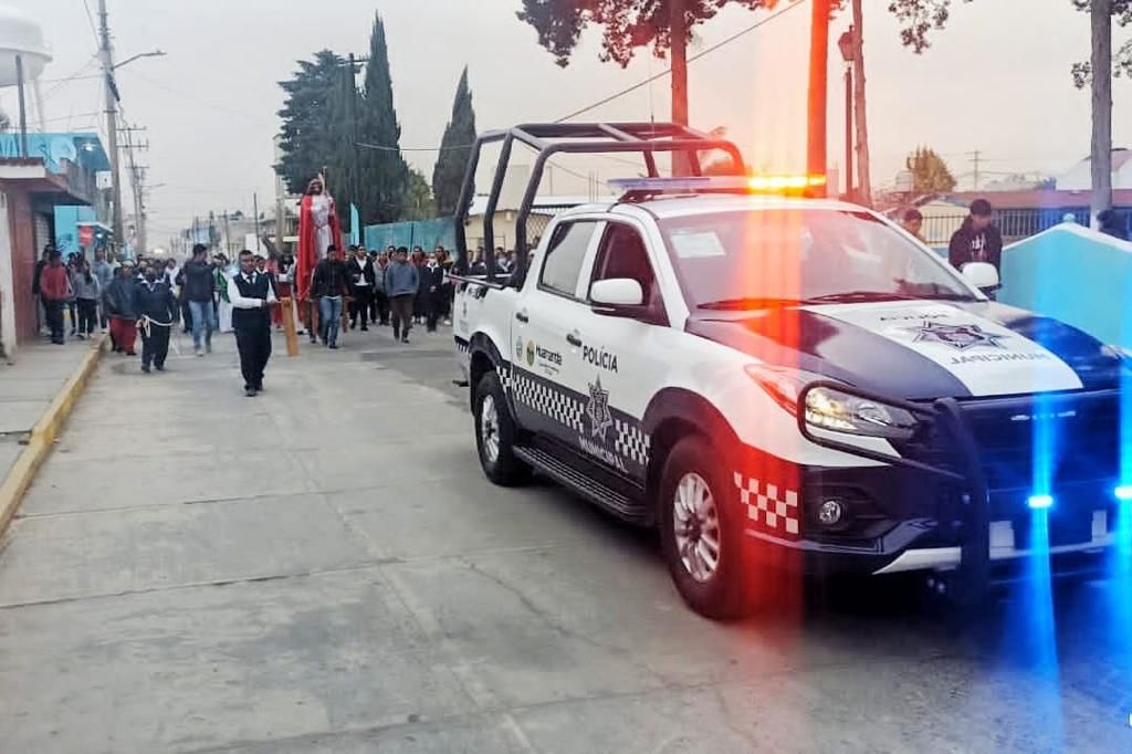 Para proteger la integridad de los ciudadanos y asegurar que las actividades religiosas de este día se lleven a cabo en paz y tranquilidad, elementos de la Dirección de Seguridad Pública, Tránsito y Protección Civil de Huamantla, resguardaron las actividades religiosas que se desarrollan en la cabecera municipal y las 39 comunidades.