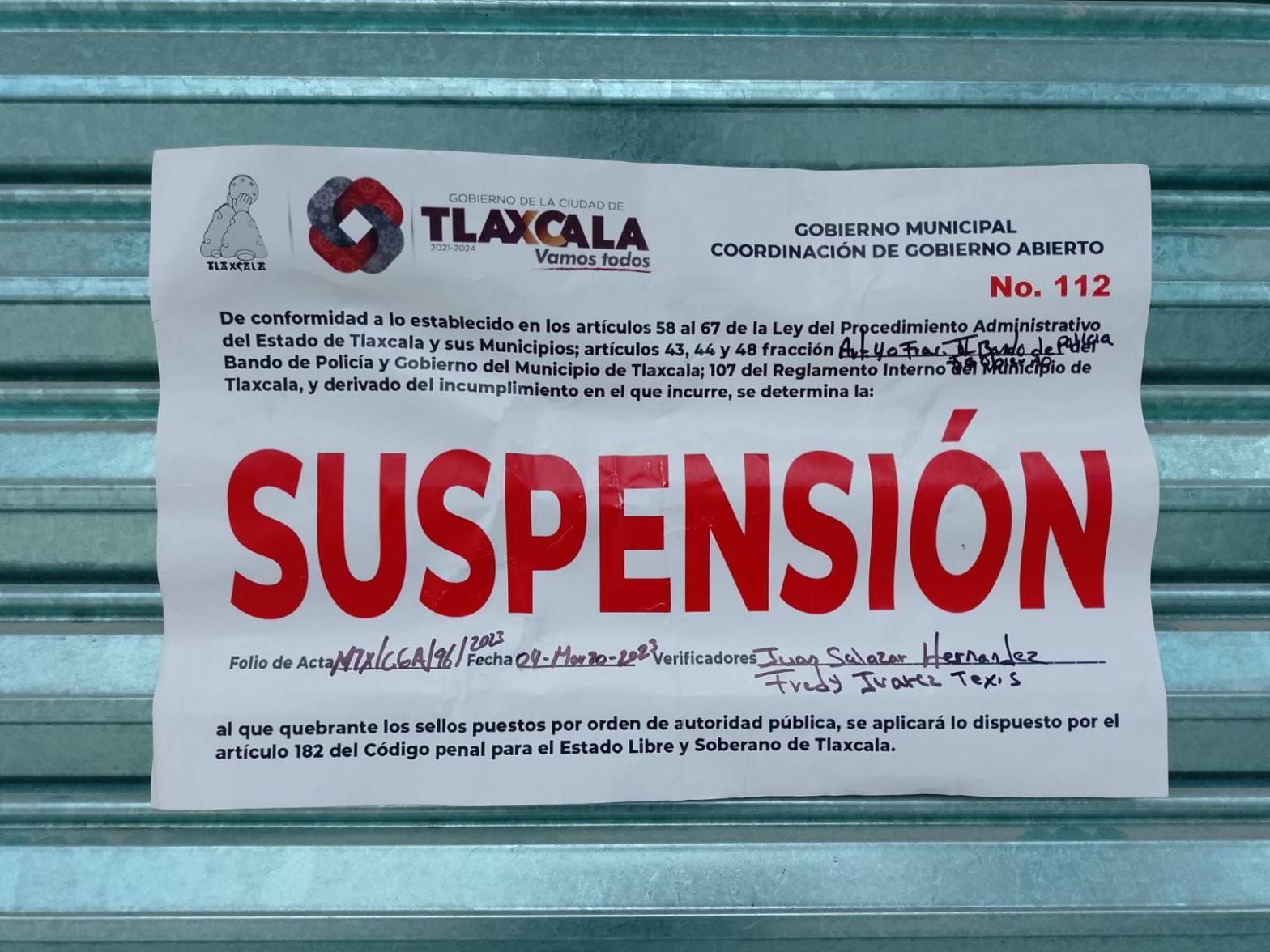 Como parte de los operativos que realiza el Ayuntamiento de Tlaxcala contra la venta irregular de bebidas alcohólicas, el establecimiento “Abarrotes Lima”, de la comunidad de San Lucas Cuauhtelulpan, fue suspendido por no contar con las autorizaciones para su funcionamiento respecto al giro por el que está dado de alta.