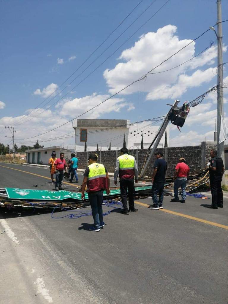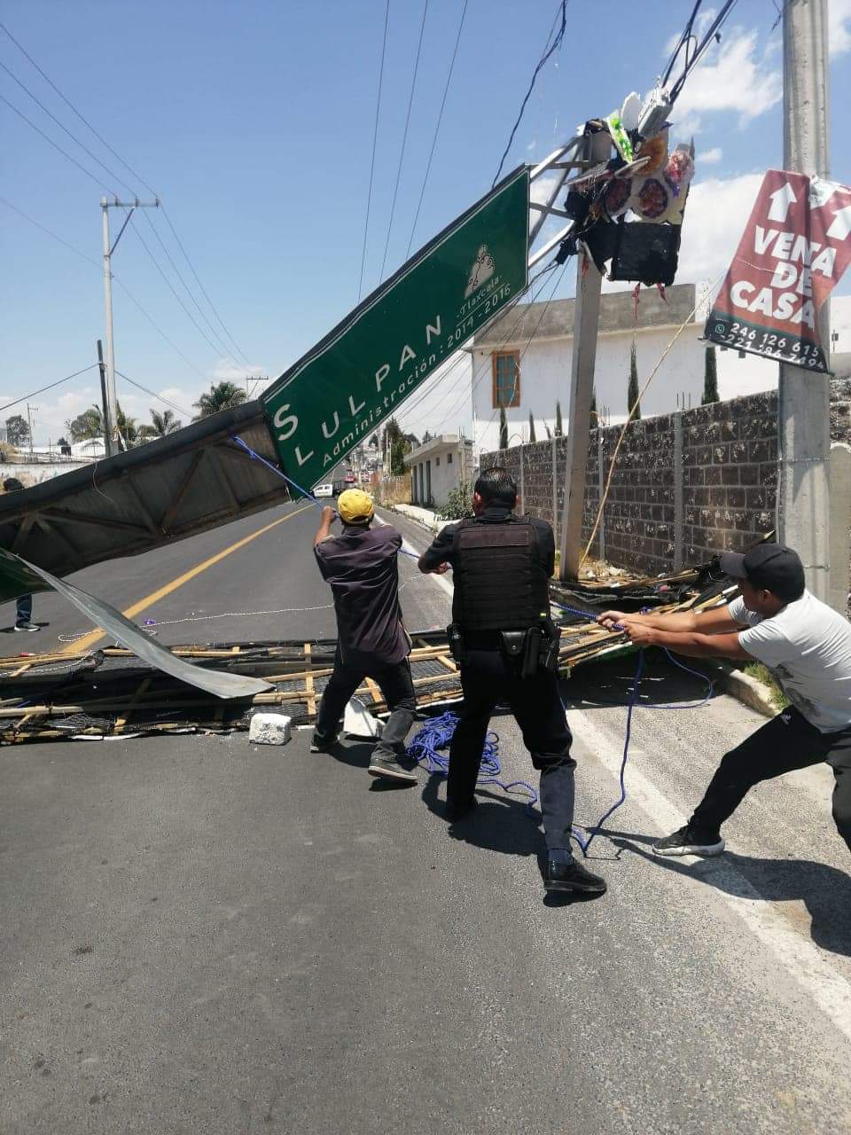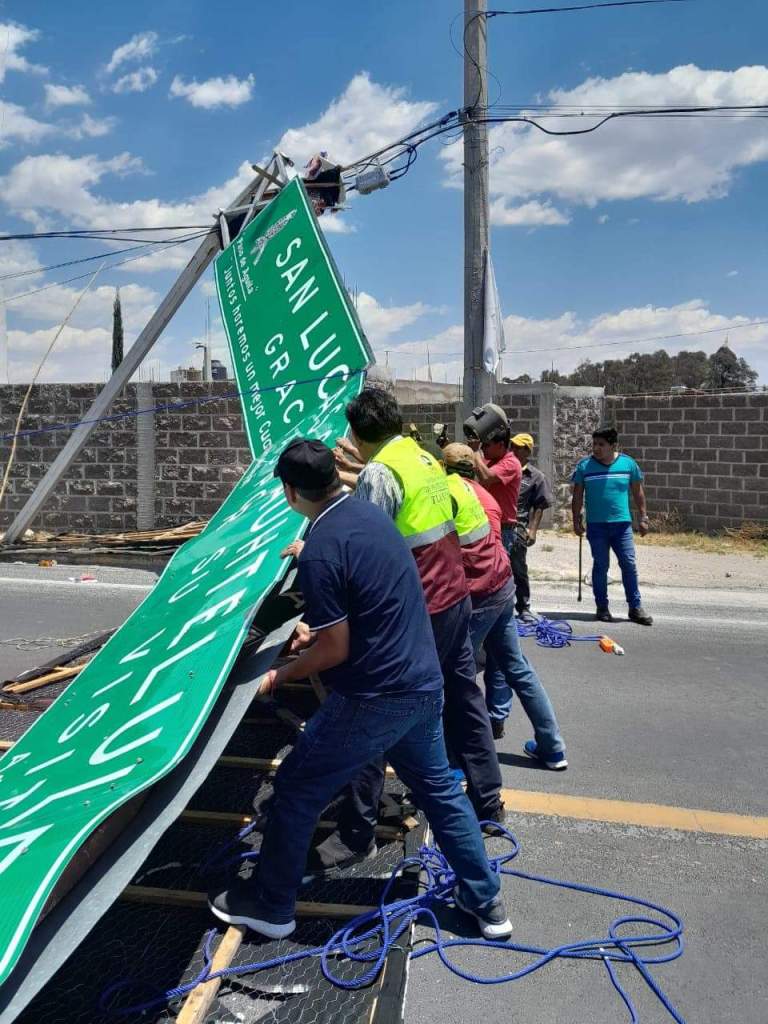 El letrero de acceso a la comunidad se venció bloqueando la vialidad principal, por fortuna no hubo personas lesionadas.