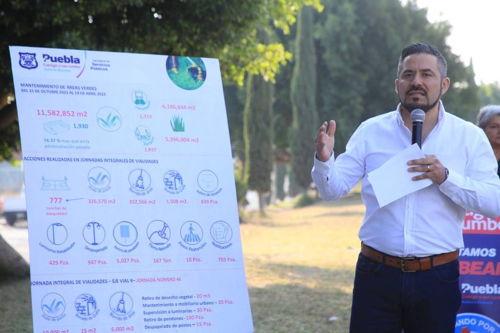 La limpieza de los espacios públicos en el municipio continúa por buen rumbo, pues gracias a la Jornada de Limpieza Integral de Vialidades número 46 el Ayuntamiento de Puebla -encabezado por Eduardo Rivera Pérez- dejó ‘de 10’ el Eje Vial K, entre la avenida Valle de México y la 3 Sur.