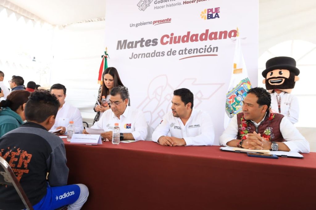 En este «Martes Ciudadano» los habitantes de Tepeaca y vecinos de los municipios aledaños tuvieron la oportunidad de expresar directamente sus propuestas y peticiones al Gobernador del Estado, Sergio Salomón Céspedes Peregrina, a su esposa la titular del Dif Estatal, Gabriela Bonilla Parada, al Presidente Municipal de Tepeaca, José Huerta Espinoza, a su esposa la Presidenta del DIF Municipal, Rebeca Sánchez González, así como a Secretarios de Estado, representantes de todas las áreas del Gobierno Estatal así como los Directores del Municipio de Tepeaca.