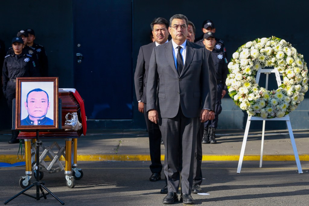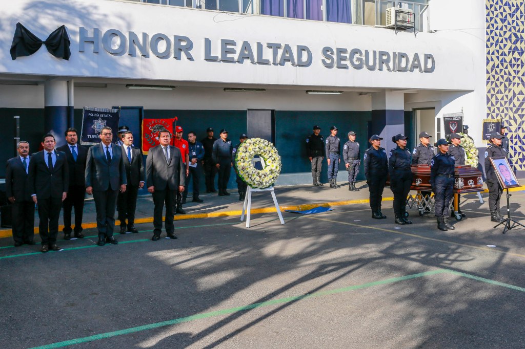 CIUDAD DE PUEBLA, Pue. – El gobernador Sergio Salomón presidió el homenaje a Arturo Núñez Martínez, policía estatal que perdió la vida en cumplimiento de su deber.