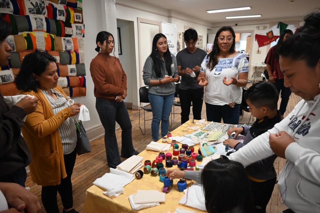 En el marco del Día de la Hermandad Tlaxcala–New Heaven, artesanos textiles del municipio de Ixtenco y Contla impartieron dos talleres sobre la técnica del pepenado y la elaboración de tintes y pigmentos naturales.
