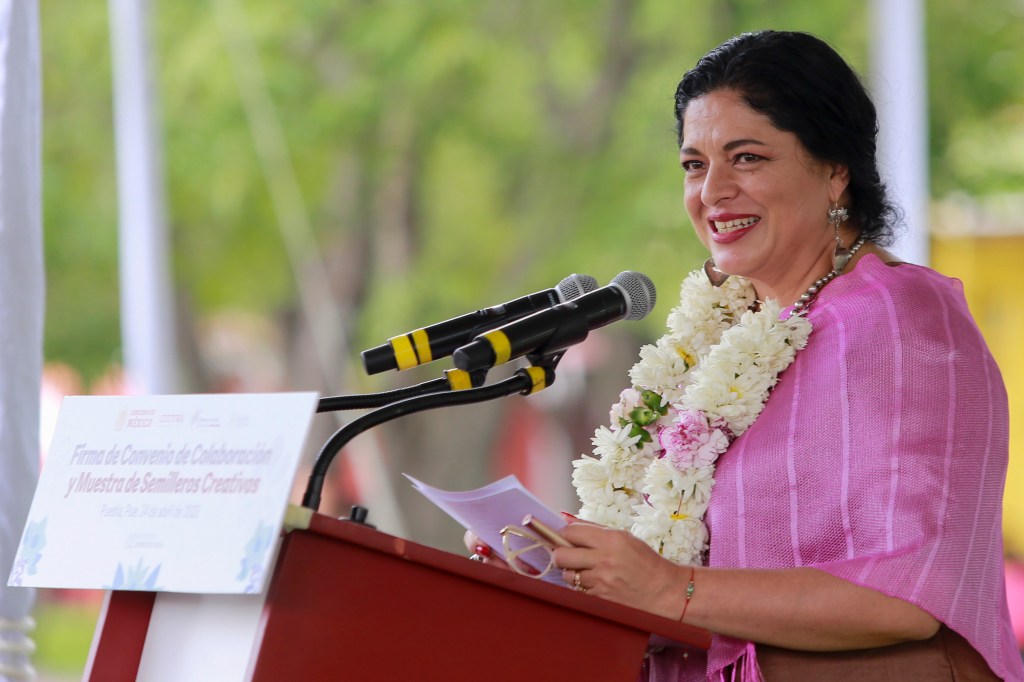 En su intervención, Alejandra Frausto Guerrero, secretaria de Cultura federal, comentó que el gobierno de Andrés Manuel López Obrador ha garantizado el Derecho Humano de acceso a la cultura, además de impulsar estrategias, como los “Semilleros Creativos”, para recomponer y fortalecer el tejido social.