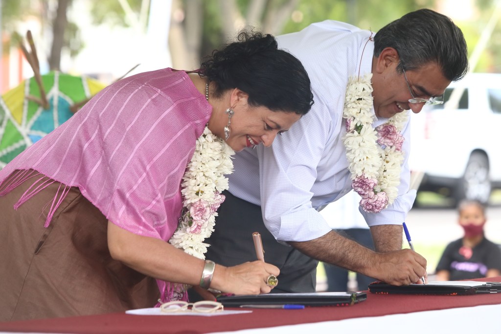 CIUDAD DE PUEBLA, Pue. – La cultura es uno de los pilares fundamentales para garantizar futuro y una mejor sociedad, por lo que el gobierno estatal promueve, en conjunto con la federación y municipios, proyectos estratégicos en esta materia, resaltó el gobernador Sergio Salomón al firmar un convenio de colaboración con la secretaria de Cultura federal, Alejandra Frausto Guerrero.