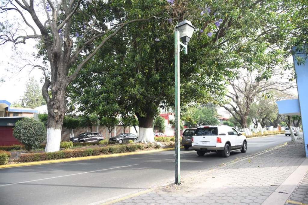 El poste de alumbrado público presentaba una inclinación que podía representar un riesgo para los transeúntes, por lo que se reparó su estructura y en estos momentos se encuentra funcionando de forma correcta.