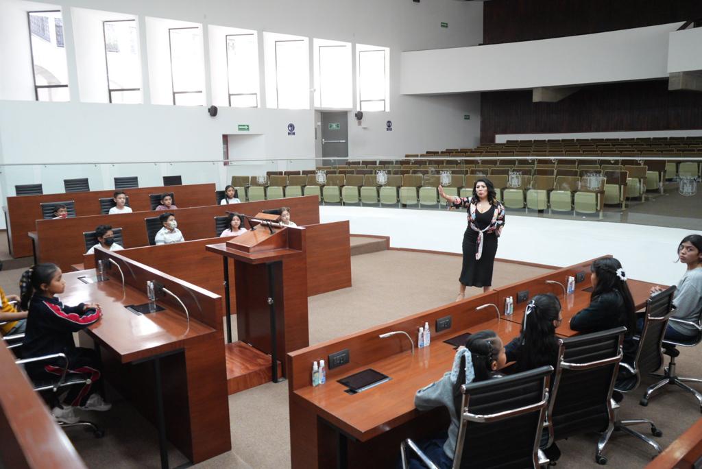 Con un recorrido previo, las y los diputados infantiles conocieron las instalaciones del Palacio Legislativo, así como el pleno de sesiones en donde cada representante de las infancias tlaxcaltecas dará sus propuestas para mejorar la convivencia escolar, la protección al ambiente y los derechos de las infancias, entre otros temas.