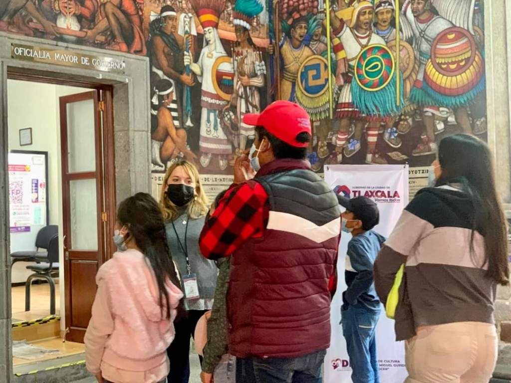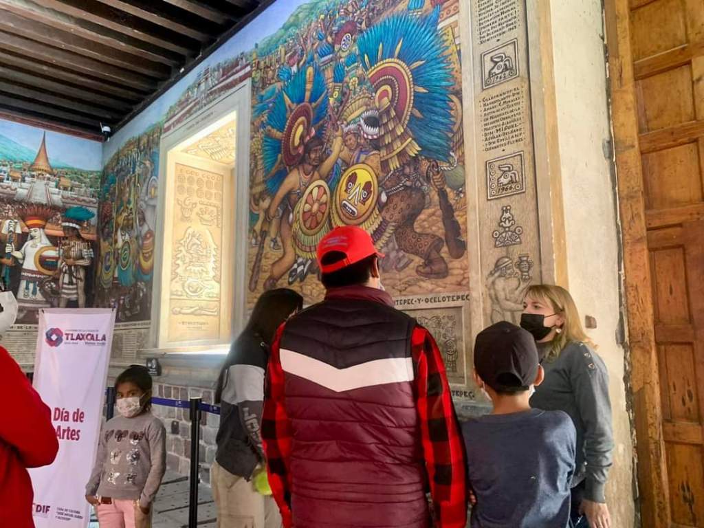 También se efectuó una visita guiada a los murales del Palacio de Gobierno del Maestro Desiderio Hernández Xochitiotzin (qepd), dónde Elena Minnullina, adscrita a la Dirección de Turismo Capitalino, explicó a las y los niños la representación de escenas fundamentales en la historia tlaxcalteca.