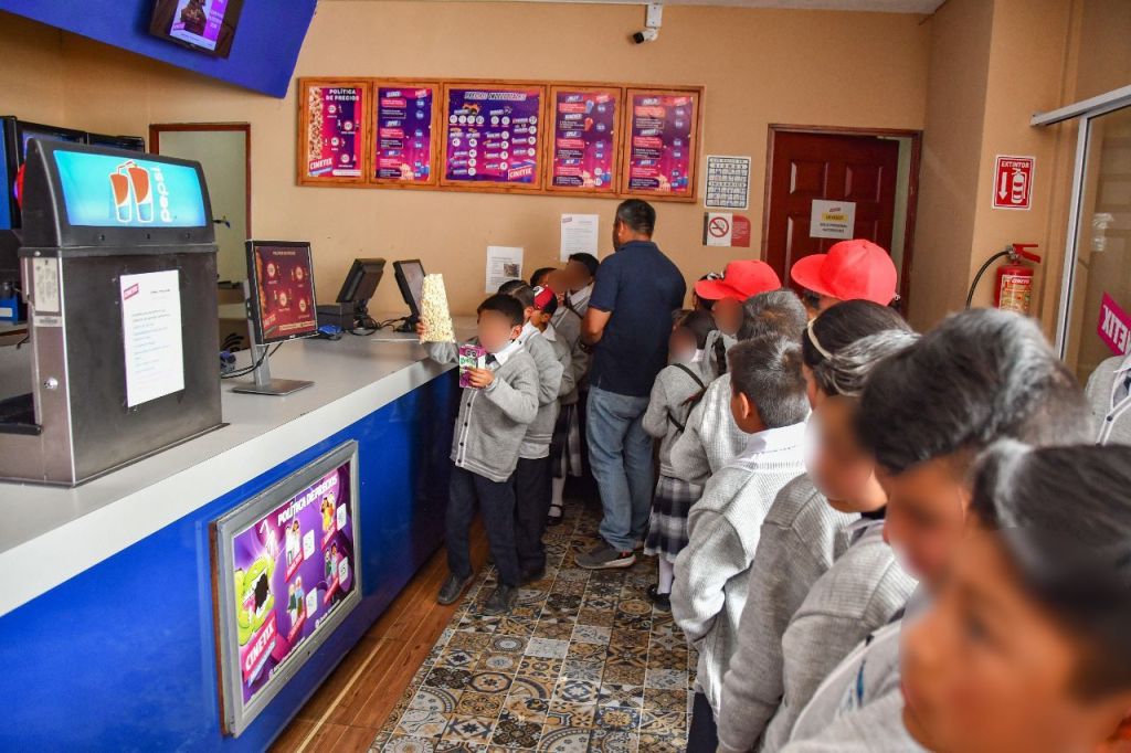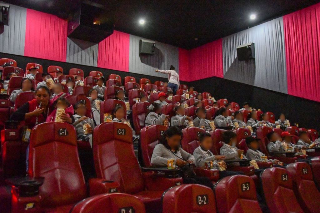 El alcalde Santos Cedillo, se coordinó con los maestros y mandó transporte para los alumnos; y al llegar al cine, todos recibieron un lunch y disfrutaron de la película infantil del momento “Super Mario Bros”.
