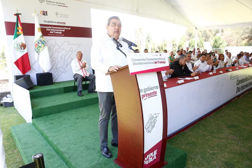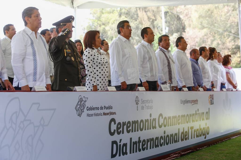 CIUDAD DE PUEBLA, Pue.– Sin distingo, el gobierno de Puebla mantiene firme su compromiso de garantizar el Estado de Derecho, los derechos laborales y la igualdad, manifestó el gobernador Sergio Salomón al presidir la Ceremonia Conmemorativa por el Día Internacional del Trabajo.