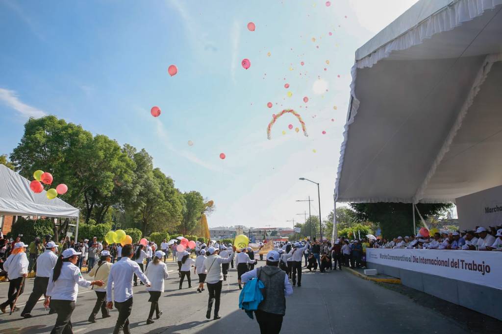 Previo a la ceremonia, el gobernador asistió a la Marcha Conmemorativa por el Día Internacional del Trabajo en el que participaron trabajadoras y trabajadores de diversos sectores.