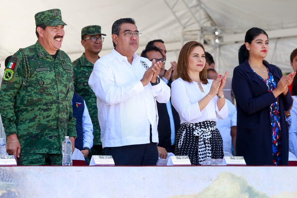 CIUDAD DE PUEBLA, Pue.- El gobernador Sergio Salomón y su esposa Gaby Bonilla, presidenta honoraria del Patronato del SEDIF, asistieron a la escenificación de la Batalla del 5 de Mayo de 1862, organizada por la XXV Zona Militar.