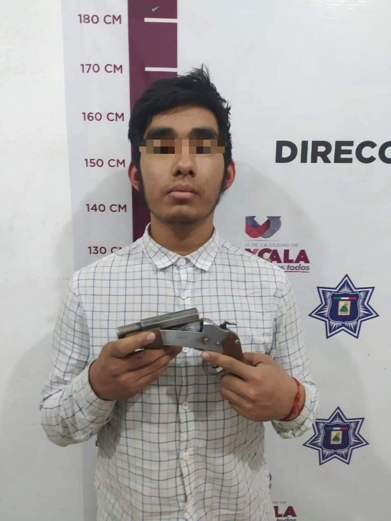 Elementos de la Dirección de Seguridad Ciudadana y Movilidad del Municipio de Tlaxcala detuvieron a un masculino por portación de arma de fuego y cartuchos, luego de levantarle una infracción por infringir el reglamento de tránsito municipal.