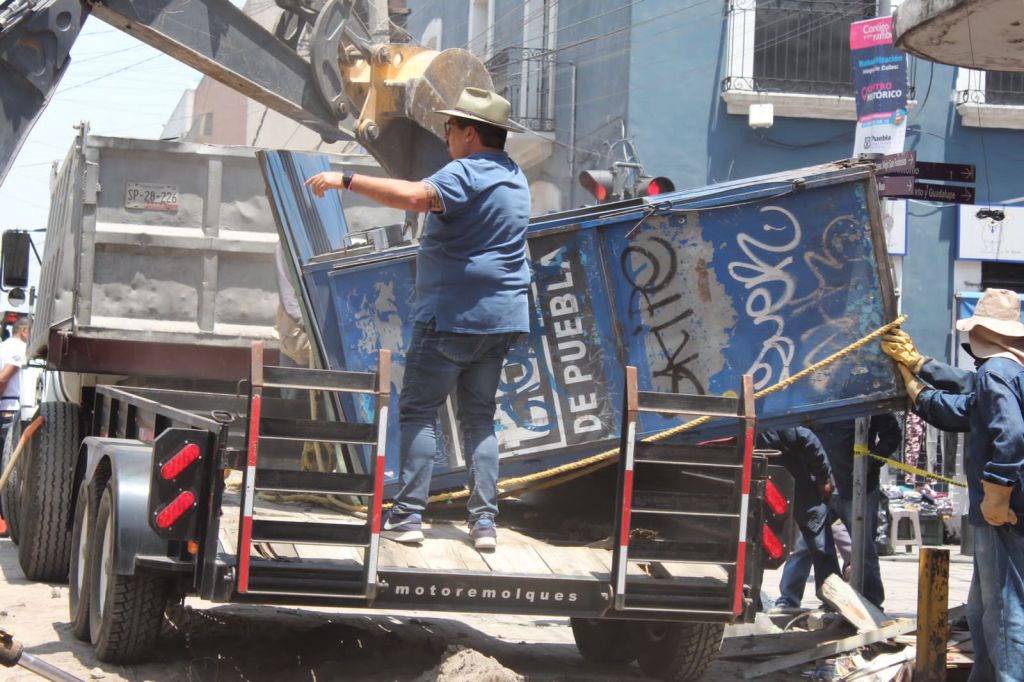 El Ayuntamiento de Puebla, a través de la Dirección de Desarrollo Urbano, lleva a cabo el retiro de casetas de venta de periódico ubicadas en calles del Centro Histórico, con el objetivo de tener orden para impulsar la movilidad, una mayor seguridad y mejorar la imagen urbana en la zona.