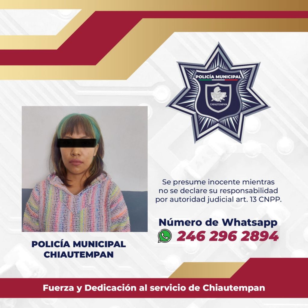 Al encontrarse en un hecho constitutivo de delito, los policías de Chiautempan procedieron a la legal detención de ambas personas, identificadas como Luis N. y Areli N. para posteriormente ponerlos a disposición de la Procuraduría General de Justicia del Estado (PGJE).