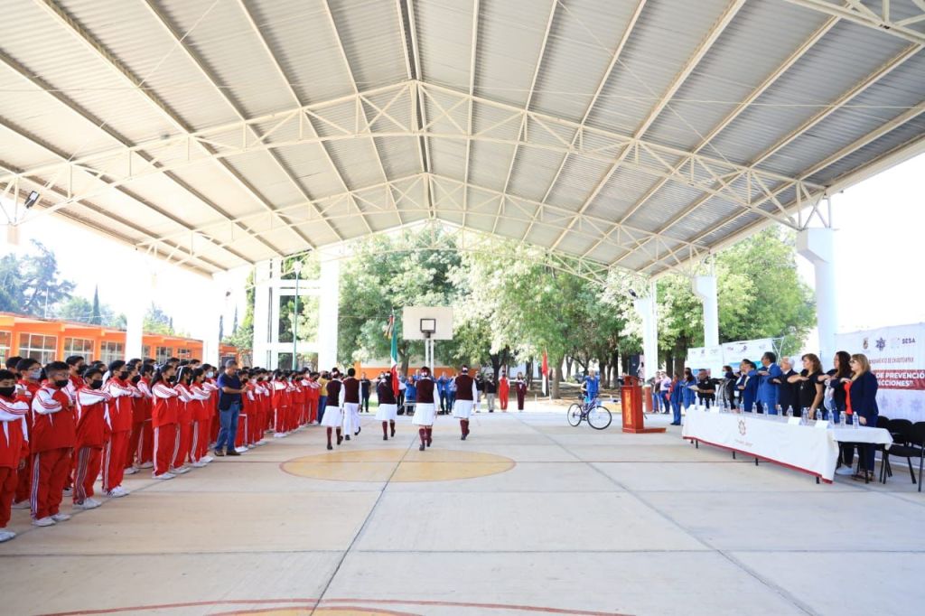 El Ayuntamiento de Chiautempan a través de la Dirección de Seguridad Pública Municipal con el apoyo del gobierno del estado, clausuraron en la secundaria técnica número 4, la Semana de Prevención de Adicciones.