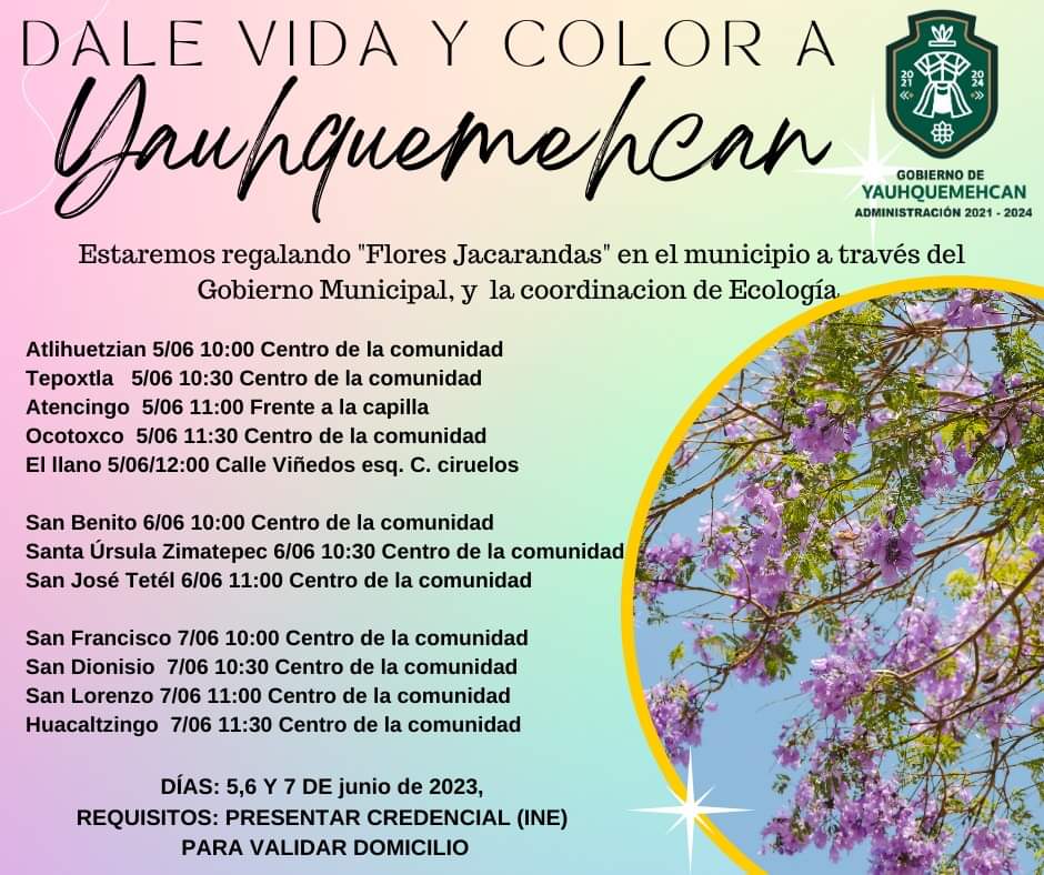 El Gobierno de Yauhquemehcan 2021-2024 y la coordinación municipal de ecología, informan a todo el municipio que se estarán donando «Jacarandas» en sus comunidades.