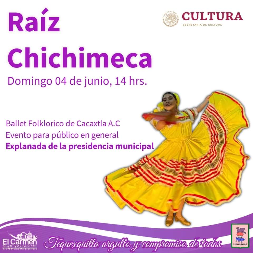 El Gobierno Municipal de El Carmen Tequexquitla en coordinacion con casa de cultura, te invita a disfrutar de un ensamble interdisciplinario con representaciones artísticas dancíntiscas que toman como base la expresión y tradiciones que dan identidad a Tlaxcala.