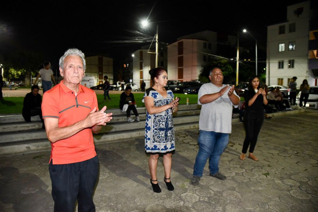Al término del acto protocolario de encendido de luminarias, el presidente municipal, constató el uso de áreas comunes como explanadas y canchas, donde las familias ahora puedes transitar y convivir con mayor seguridad.