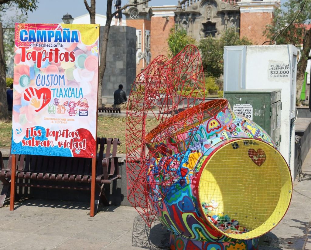 Esta campaña, denominada “Una tapita, un latido” consiste en la instalación de un contenedor en el parque Hidalgo, el cual fue donado por el colectivo Custom Tlaxcala, originarios de Chiautempan y quienes son representados por los jóvenes Eliza y Luis Ángel Jiménez Medel, en el cual, se podrán depositar las tapitas plásticas que la A.C. necesita a favor de niños y niñas con cáncer en la entidad.