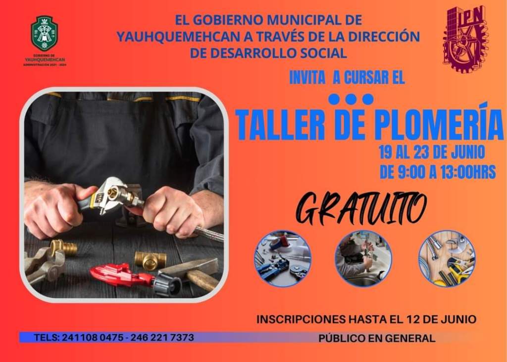 El área de Desarrollo Social te invita a cursar el: «Taller de Plomería». Si no tienes experiencia, es ideal para ti, y si la tienes, este curso reforzará tus conocimientos.