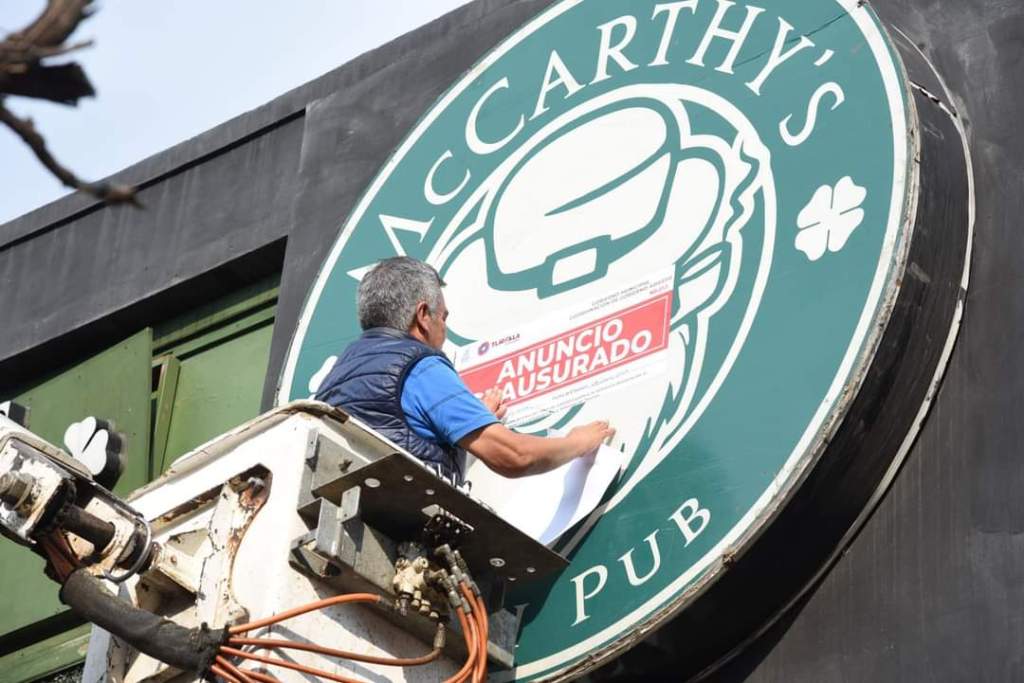Personal del Ayuntamiento de Tlaxcala colocó sellos de suspensión de actividades en el establecimiento mercantil denominado “McCarthy´s Irish Pub”, ubicado sobre la Avenida Juárez, Colonia Centro.