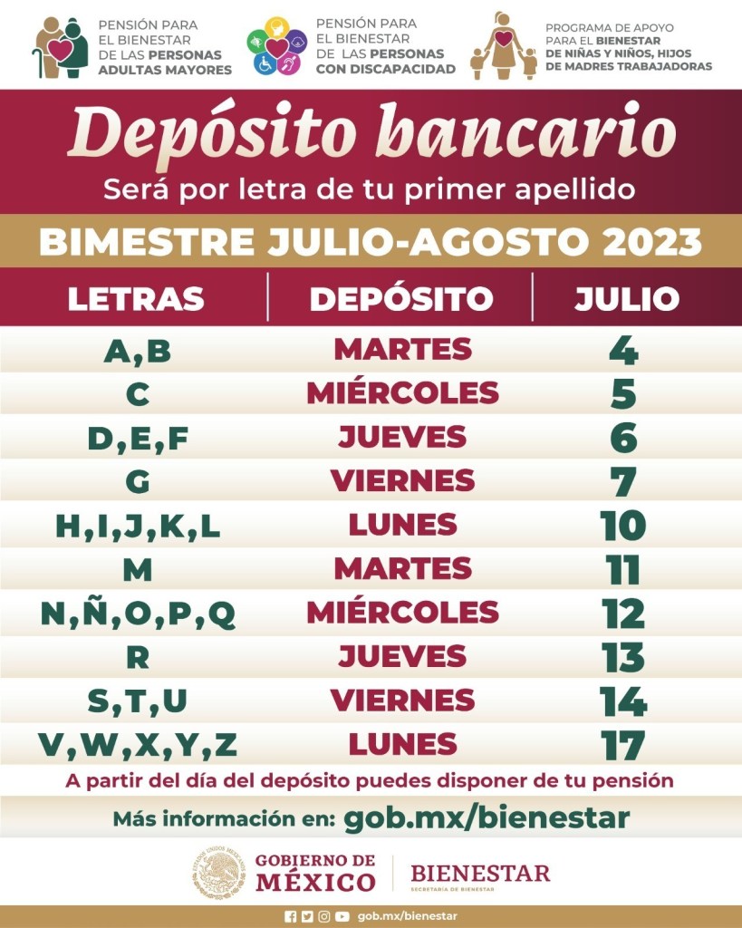 - Para brindar mejor atención a derechohabientes, el depósito bancario se realizará de acuerdo con la letra del primer apellido, del 4 al 17 de julio