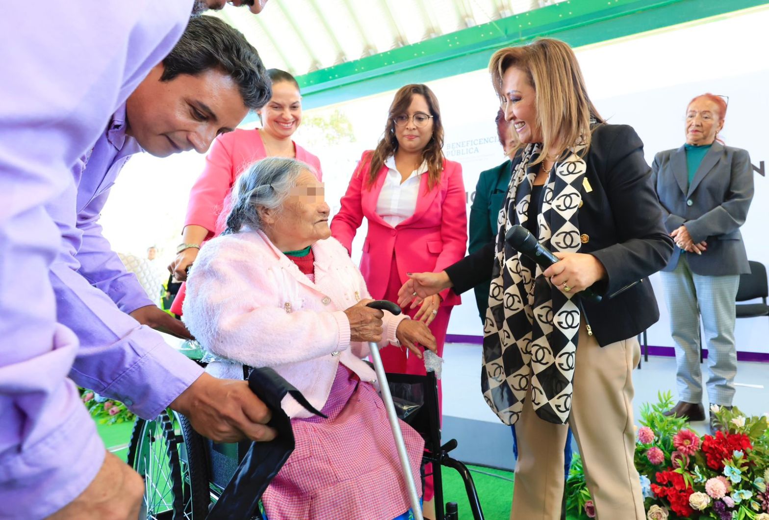 La gobernadora Lorena Cuéllar Cisneros encabezó la primera etapa de entrega de apoyos funcionales a personas con discapacidad, consistentes en sillas de ruedas estándar, activas y PCA, pañales para adultos, colchones antiescaras, andaderas y bastones.