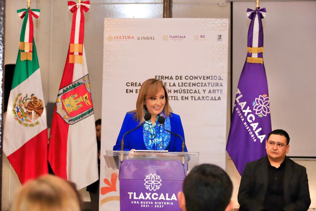 La gobernadora del estado, Lorena Cuéllar Cisneros junto con la Secretaría de Cultura (SC) y la Escuela de Música de Tlaxcala (EMET), firmaron dos convenios con el Instituto Nacional de Bellas Artes y Literatura (Inbal) para la creación de la licenciatura de música y la escuela de arte textil.