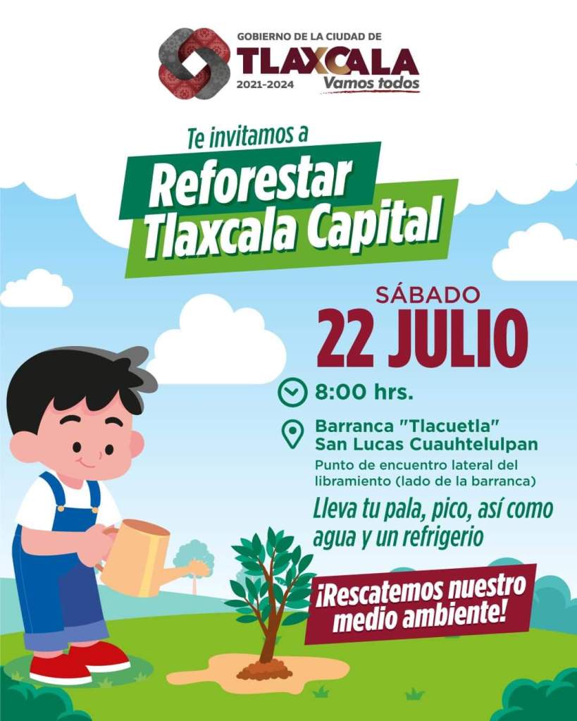 🌳🌲 El Ayuntamiento de Tlaxcala invita a la jornada de reforestación que se llevará a cabo en San Lucas Cuauhtelulpan.