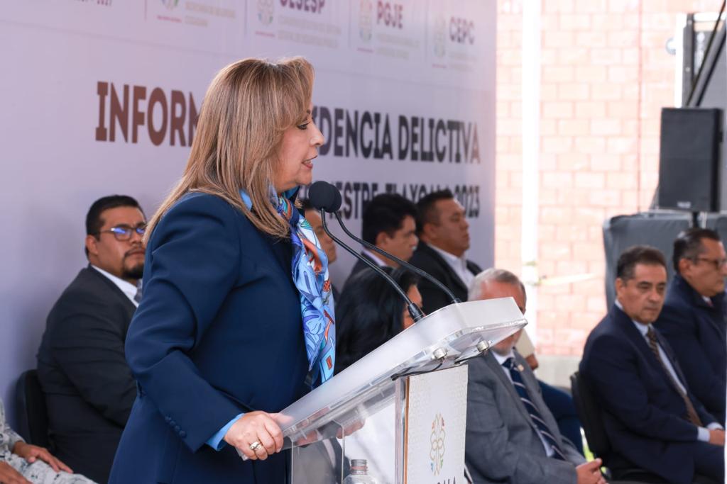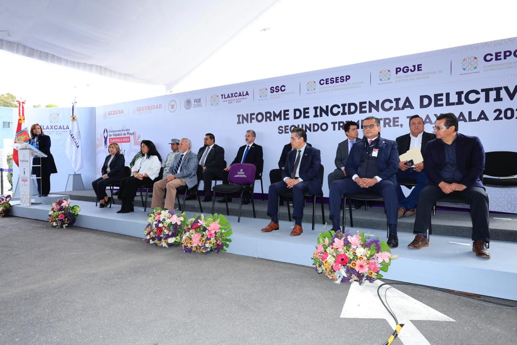 La gobernadora Lorena Cuéllar Cisneros encabezó la presentación del Segundo Informe Trimestral de Incidencia Delictiva 2023, en el que se dio a conocer que Tlaxcala ha ocupado por 12 meses el primer lugar a nivel nacional como la entidad más segura, al registrar la menor incidencia delictiva del país.