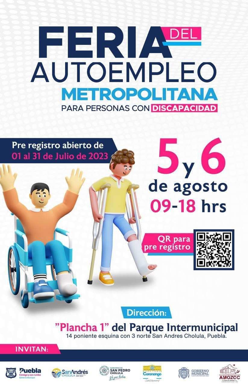 Con el objetivo de ejecutar una colaboración intermunicipal y compartir mejores prácticas de gobierno que den solución a problemáticas comunes, regidores de los ayuntamientos de Puebla, Coronango, Amozoc, Cuautlancingo, así como San Andrés y San Pedro Cholula, presentaron la primera Feria del Autoempleo Metropolitana para Personas con Discapacidad, donde podrán exponer sus productos, servicios e ideas de emprendimiento.
