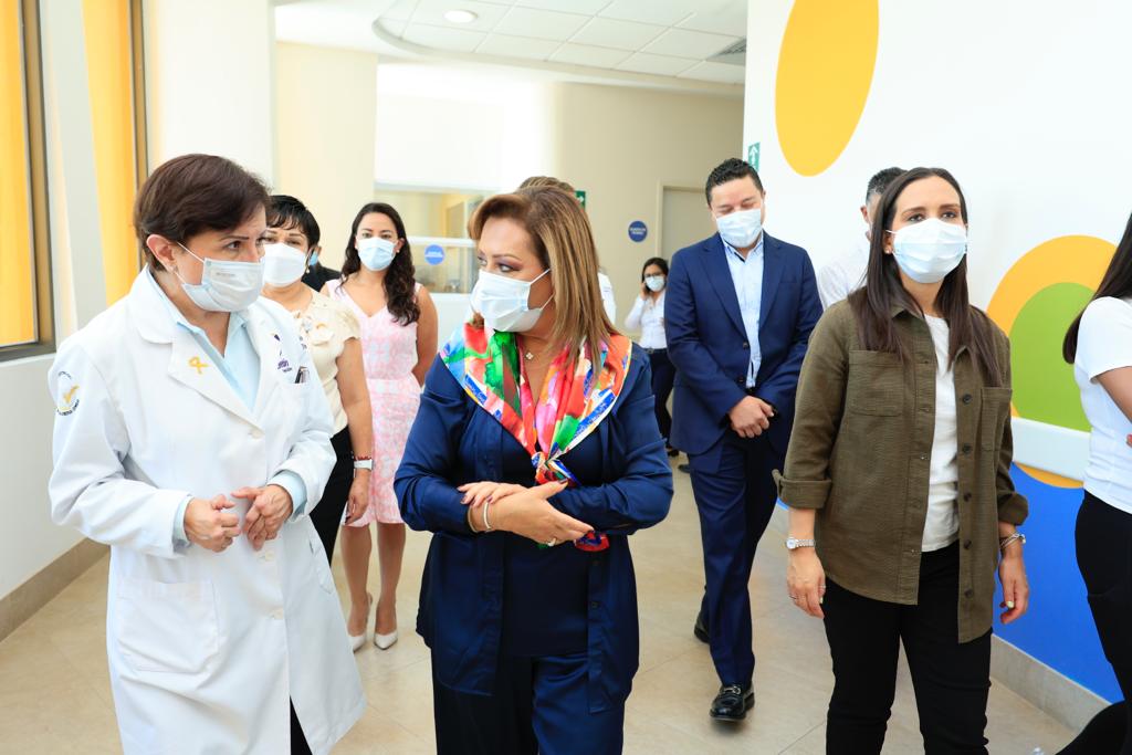 En la visita al HITO la mandataria estatal observó los servicios que se ofrece a los pacientes pediátricos que padecen cáncer y el equipamiento con el que cuenta el hospital, también recorrió la Casa Teletón que se encuentra dentro del mismo complejo y que funciona como un albergue para pacientes y familiares de otras entidades.