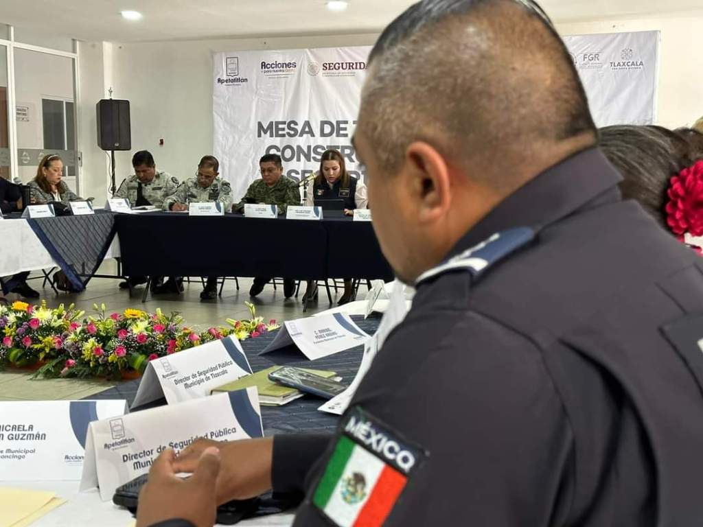 Acompañada de la Jefa de la Policía municipal, Miriam Zacapantzi, la presidenta de Tlaxcala, Maribel Pérez Arenas, se presentó en la “Mesa de Trabajo para la construcción de paz y seguridad región II”, que se llevó a cabo en Apetatitlán.