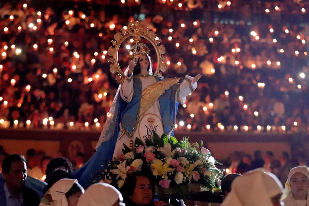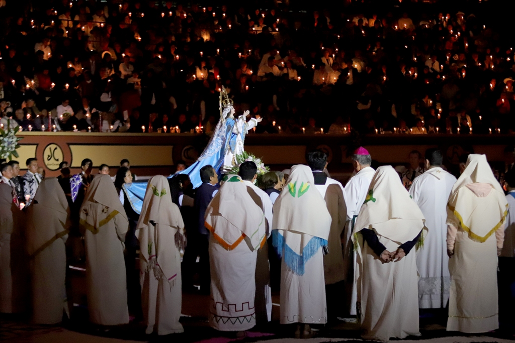 Previo al paseíllo se realizó la tradicional procesión de La Virgen de la Caridad en el ruedo mientras la plaza se iluminaba por la gente con candelas, enmarcado del Ave María interpretado por un coro de niños de Huamantla y salterios, el sacerdote ofreció la celebración religiosa y Sergio Flores leyó la oración de los toreros.