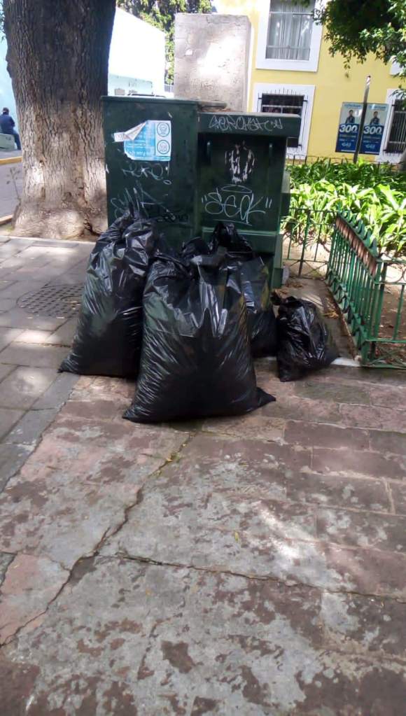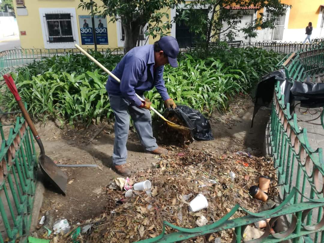 🤲🏾 Personal de Servicios Públicos del Ayuntamiento de Tlaxcala levanta hojarasca y basura del parque de la Capilla de San Nicolás Tolentino.