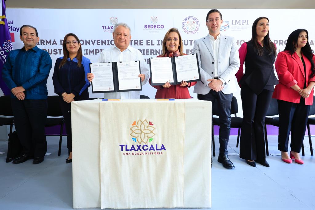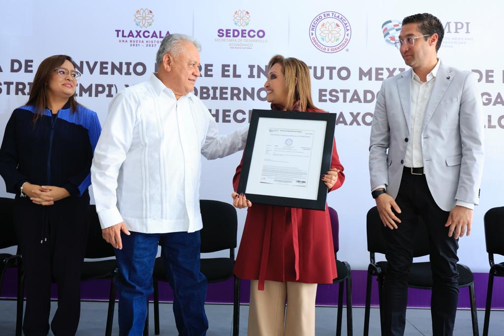 La gobernadora Lorena Cuéllar Cisneros firmó un convenio de colaboración con el director general del Instituto Mexicano de la Propiedad Industrial (IMPI), José Sánchez Pérez, con el objetivo del fortalecer el trabajo coordinado para la protección de los derechos de patente, modelos de utilidad, diseños y marcas que sean producto de la creatividad, originalidad e iniciativa tlaxcalteca, principalmente de los grupos más vulnerables.